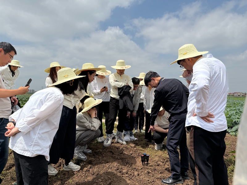 在测土展示环节,集团旗下潜江富来地公司农技专家徐正明向青年讲解测土的意义,并现场演示采集土样,检测pH值及氮磷钾丰缺状况。他指出,通过专业测土定制施肥改良方案,可实现化肥减量增效,减少面源污染,稳步提升作物产量与品质。